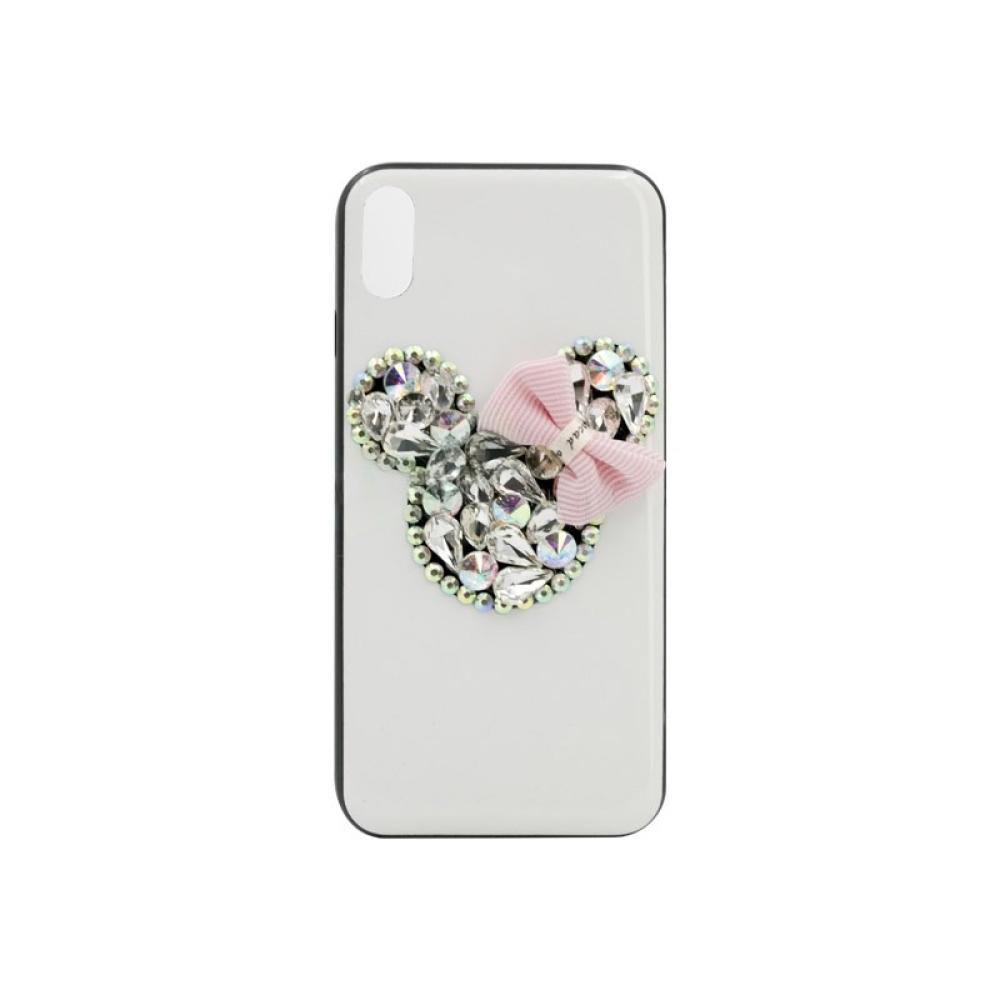 Калъф гръб Fashion Мики Маус с камъни iPhone X бял