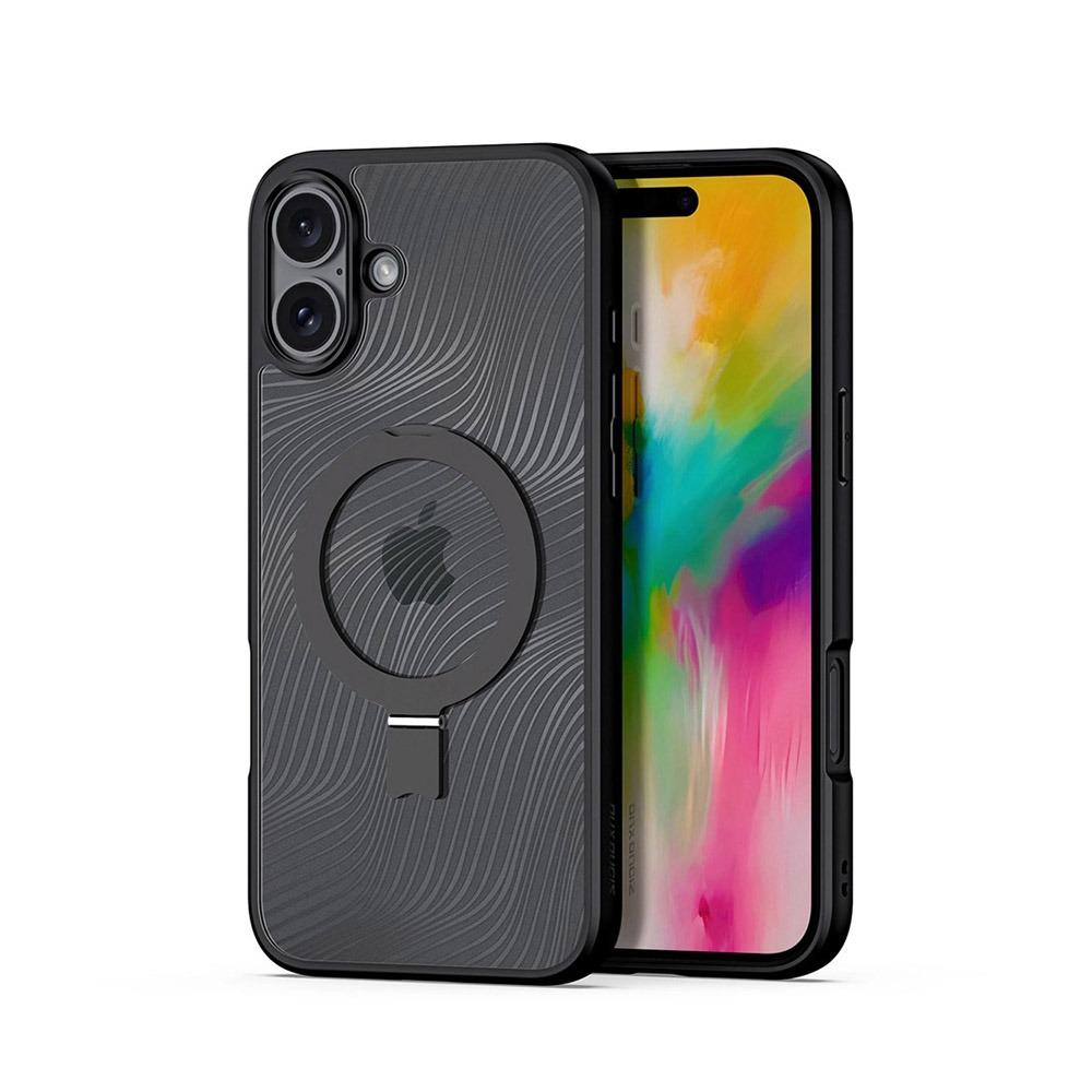 Калъф тип гръб DUX DUCIS AIMO MAGSAFE WITH STAND SERIES за iPhone 16 прозрачен с черно